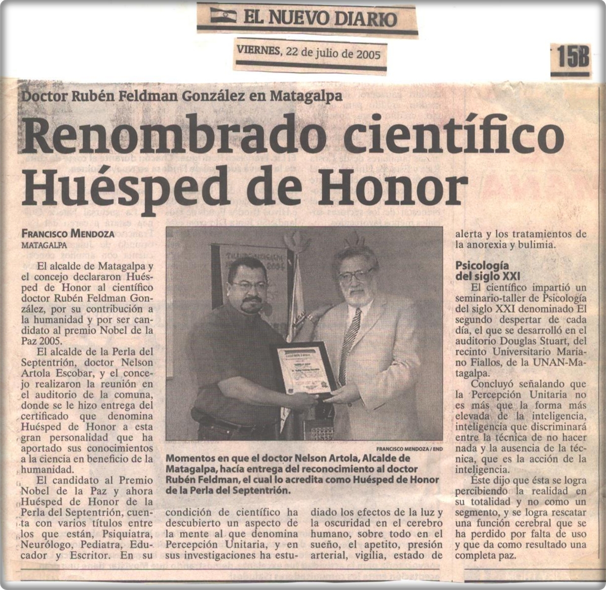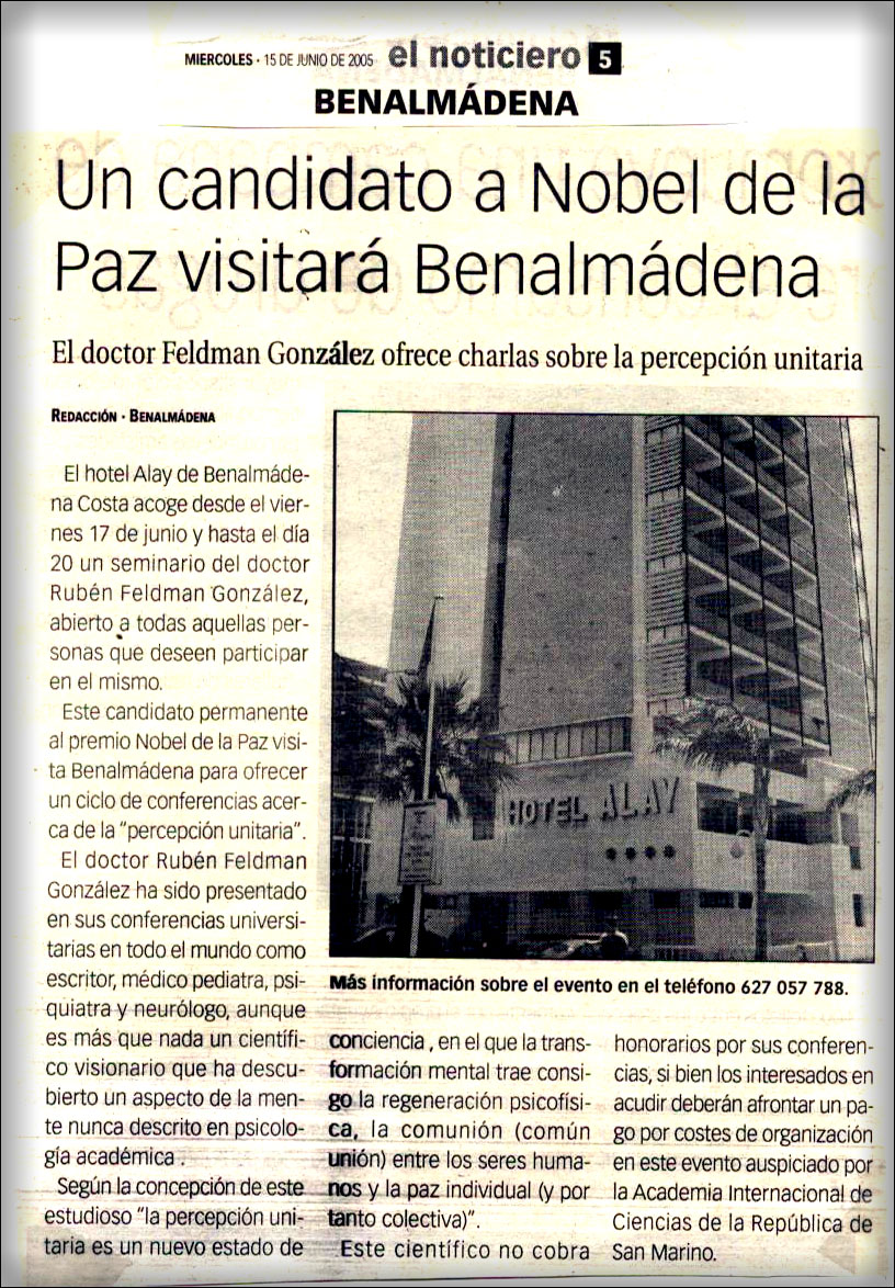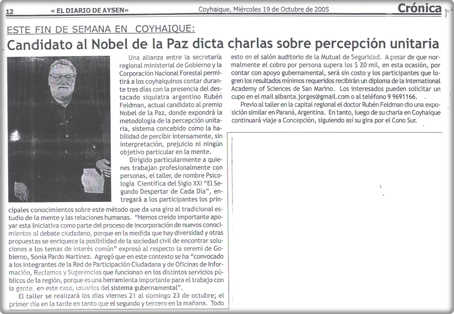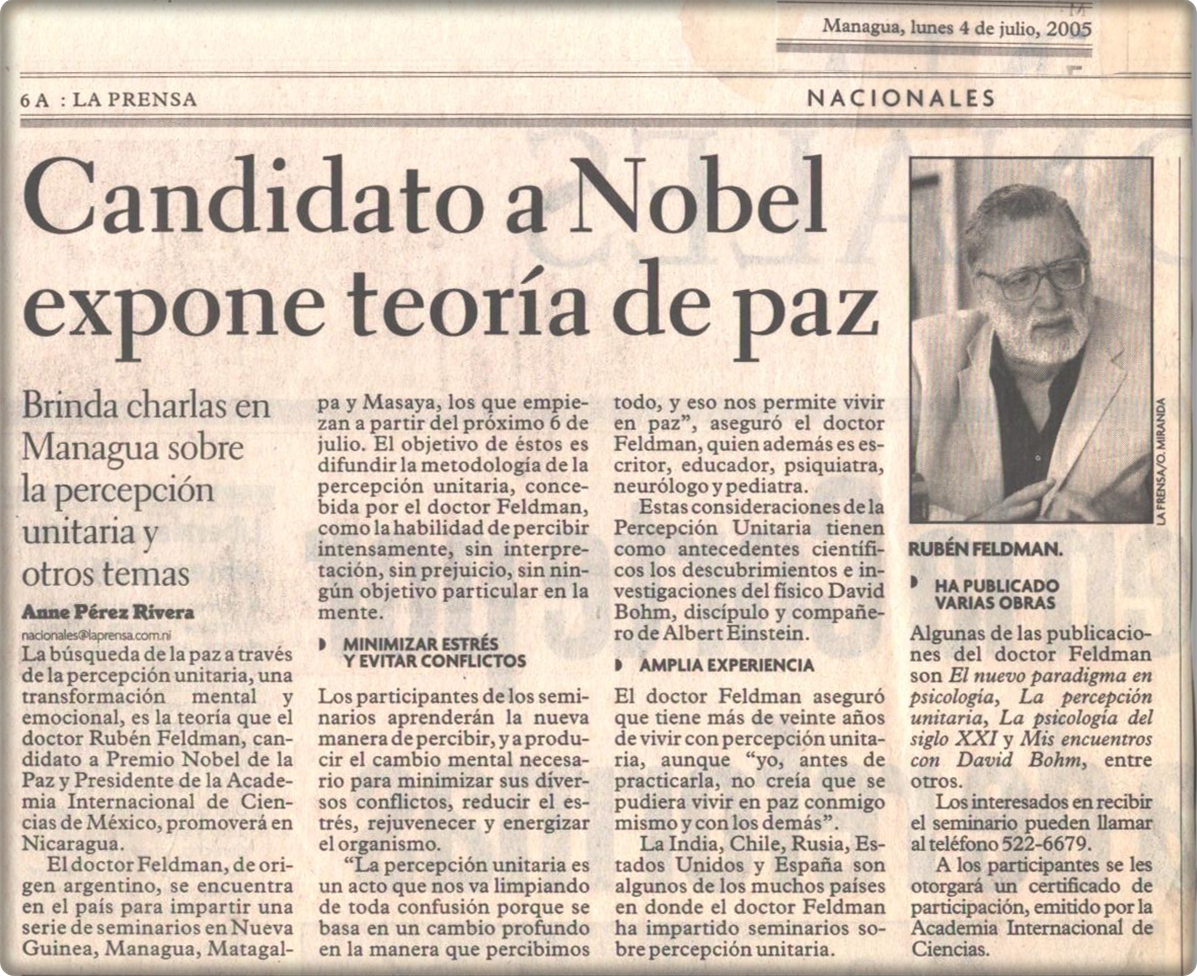 Candidato al Nobel de la Paz dicta charlas sobre Percepción Unitaria
