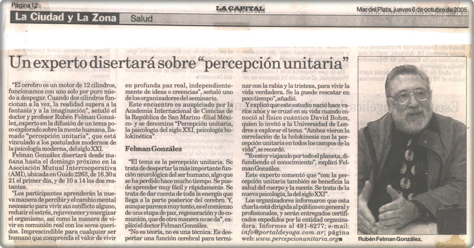 Un experto disertará sobre Percepción Unitaria