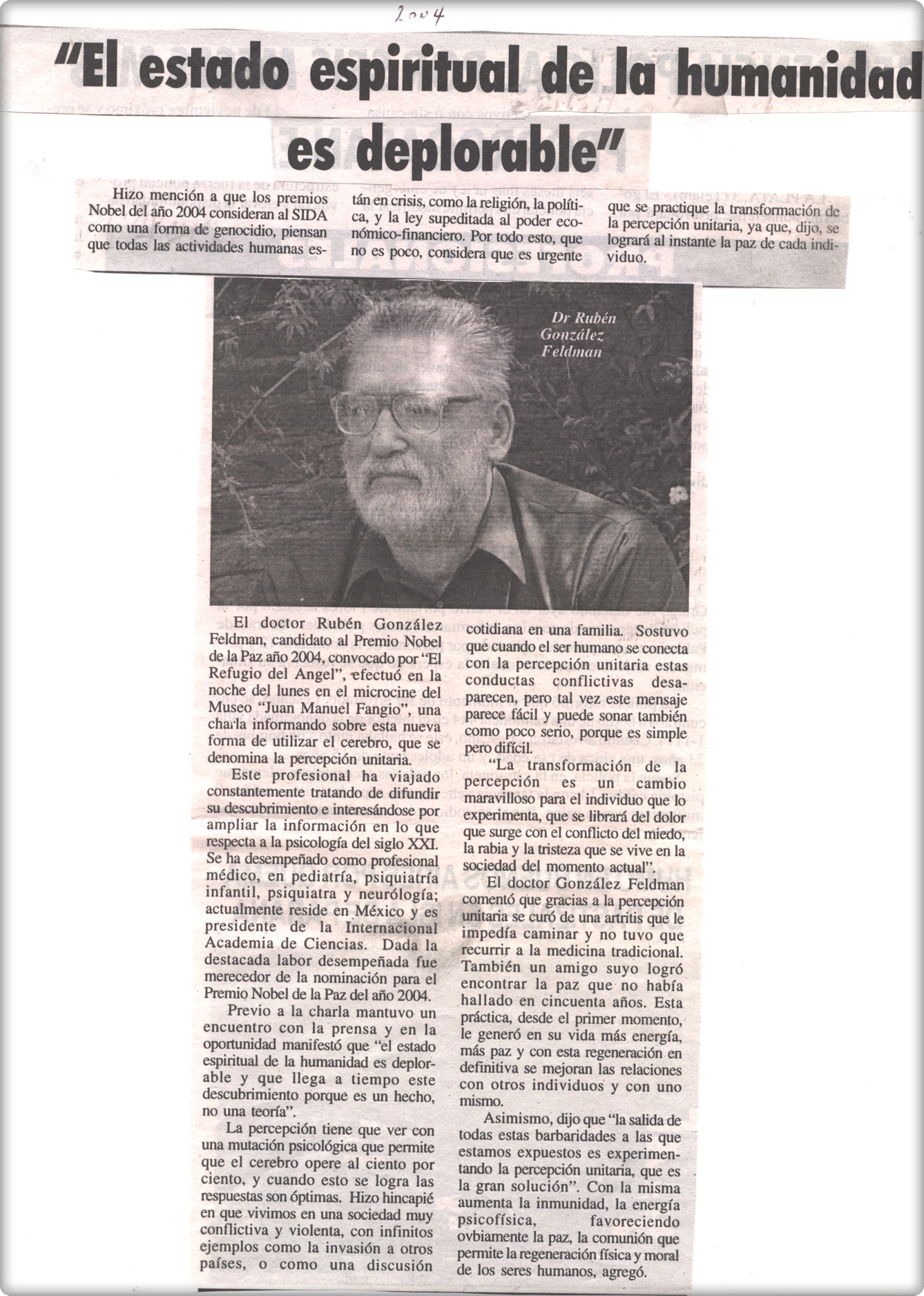 El Dr. Rubén Feldman González habla de la mutación psicológica que él llama Percepción Unitaria