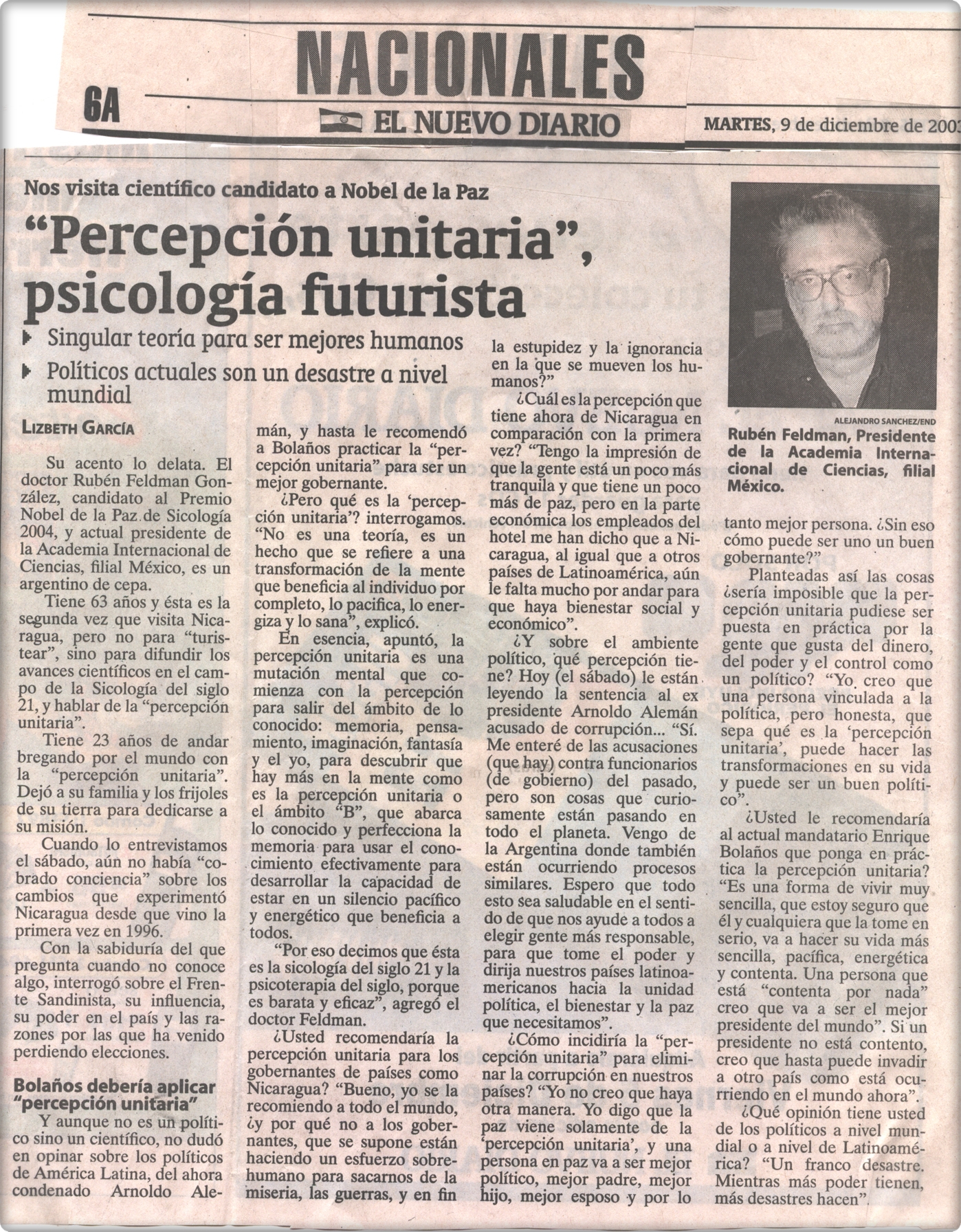 Seminario en UNAN con famoso psiquiatra, dará a conocer la Percepción Unitaria