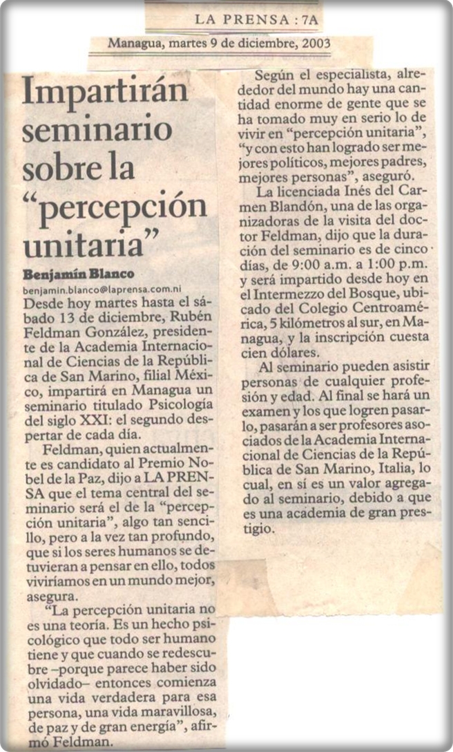 Impartirán seminario sobre la Percepción Unitaria