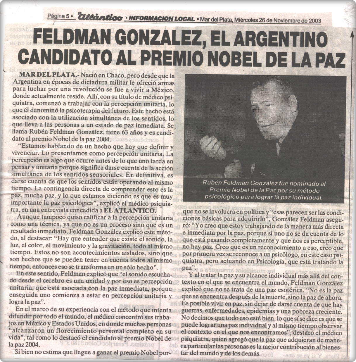 Feldman González, el argentino candidato al premio Nobel de la Paz