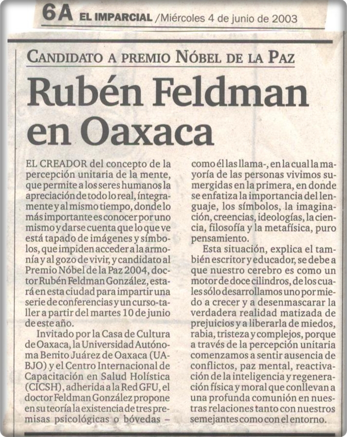 Candidato al Premio Nobel de la Paz Rubén Feldman en Oaxaca