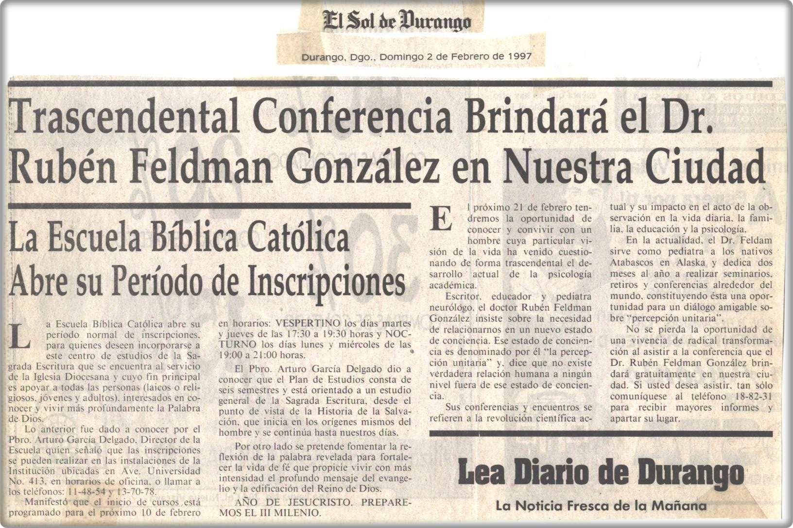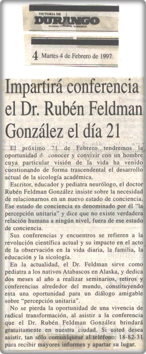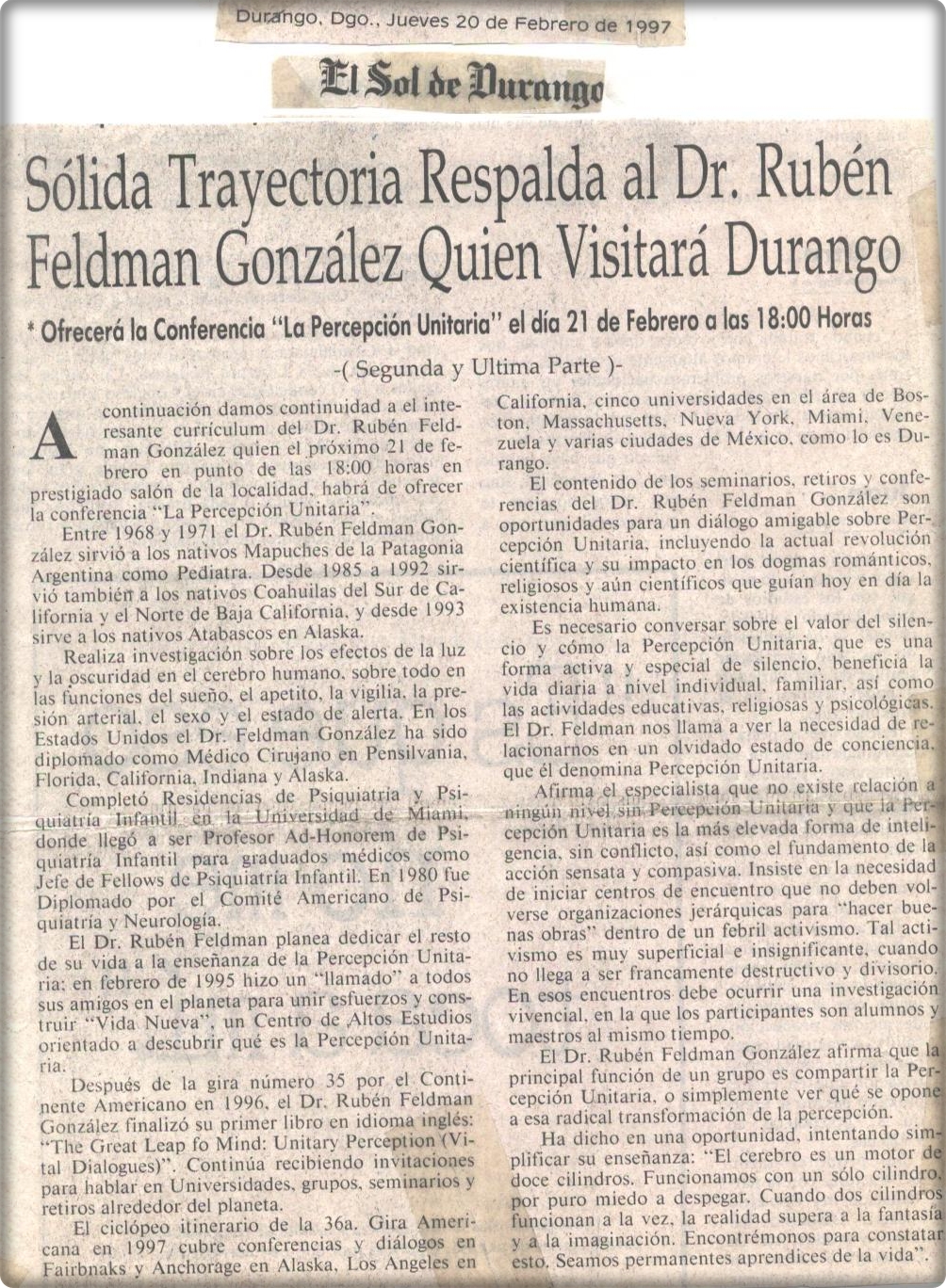 Sólida trayectoria respalda al Dr. Rubén Feldman González quien visitará Durango”. Parte II