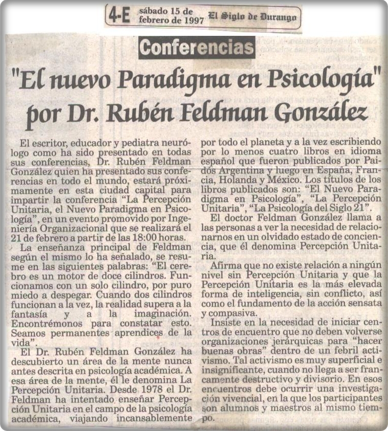 El nuevo paradigma en psicología por Dr. Rubén Feldman González